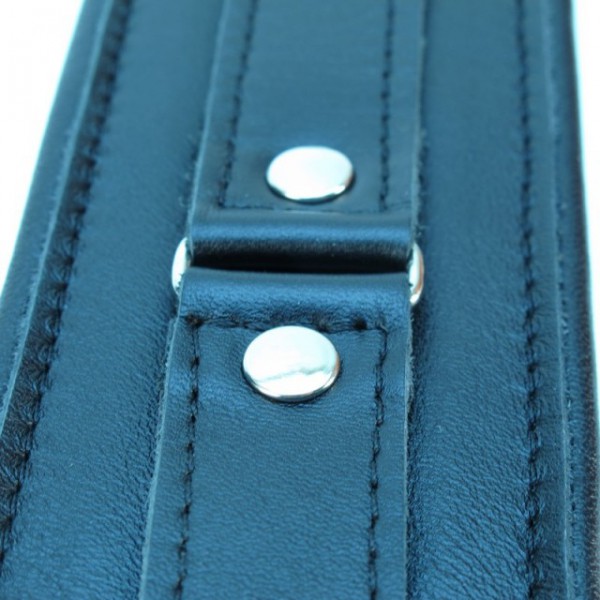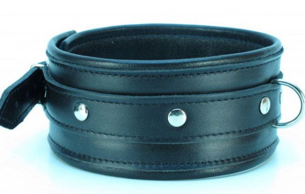 Выпол­нен ошей­ник из натуральной кожи черного цвета, декорирован металлическими клёпками. Классический дизайн ошейника великолепно смотрится, как на нежной женской шейке, так и на сильной мужской!