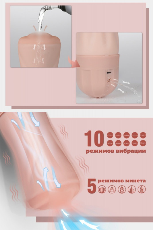Мастурбатор имеет 10 разнообразных режимов вибрации и 5 режимов вакуума, что позволяет экспериментировать с ощущениями!