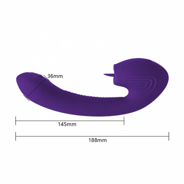 Увеличенная и изогнутая головка девайса создана для поиска и активного массажа G-точки, рельефный ствол интенсивно стимулирует вагинальную трубку, а клиторальный стимулятор в виде малюсенького язычка трепетно ласкает снаружи, увеличивая градус возбуждения! Язычок двигается вверх-вниз максимально имитируя оральные ласки